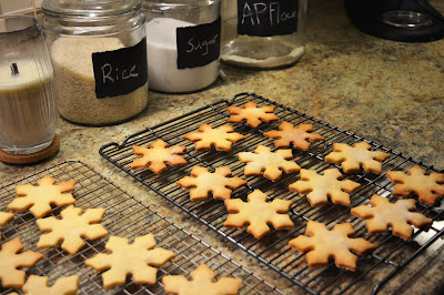 So I went with a snowflake...as the chilly rain drips down my windows I can't help but wish for snow as I munch on one of these delightful crisp cookies, washing it down with a hot cup of tea.